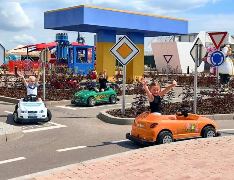 Driving School is a proven, interactive ride-on car attraction where children from 3 to 11 years old take the wheel and experience their first drive in a safe and controlled environment. Designed for amusement parks, zoos, playgrounds, and family entertainment centers, this attraction delivers a unique mix of fun, learning, and independent play.
